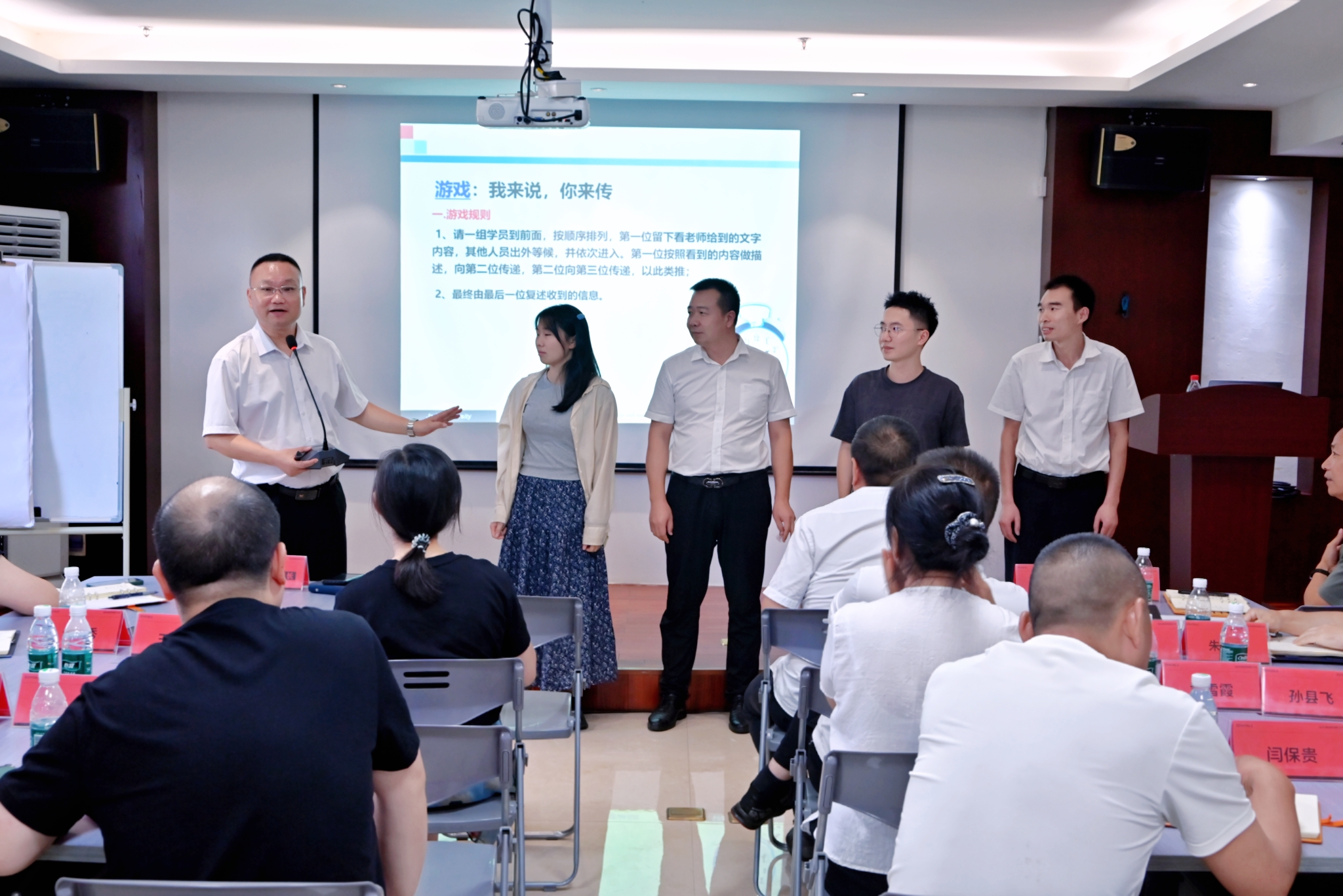 在明确沟通的重要性后,朱老师先对“沟通”作出清晰定义:沟通是以既定目的,在个人或群体间传递信息、思想、情感并反馈,最终达成共识的过程。为让学员更直观感受沟通中的信息偏差,现场开展了“我来说,你来画”互动游戏——一人描述图形特征,一人凭描述绘制,结果因描述模糊、理解差异等问题,画出的图形与原图大相径庭。游戏结束后,学员们深刻体会到:沟通绝非简单的“说与听”,而是需要技巧的双向互动。